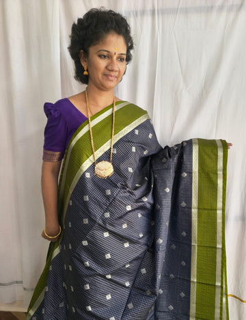 Elevate your everyday elegance with this beautifully crafted Linen Saree featuring Big Box Zari Checks...